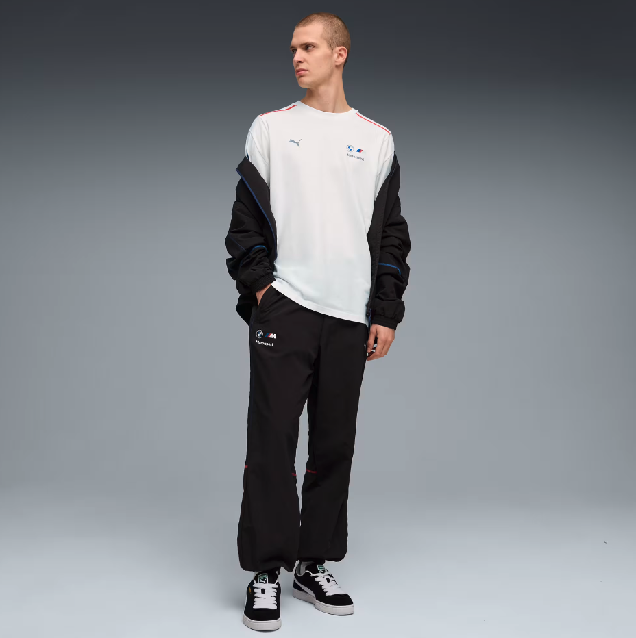 La colaboración PUMA x BMW M MOTORSPORT vuelve con una colección inspirada en el nuevo BMW M3 E46. Con un estilo relajado, tiras T7 en las mangas e icónicos detalles de la escudería, esta polera encarna la herencia de los deportes de motor, pero con un toque moderno.